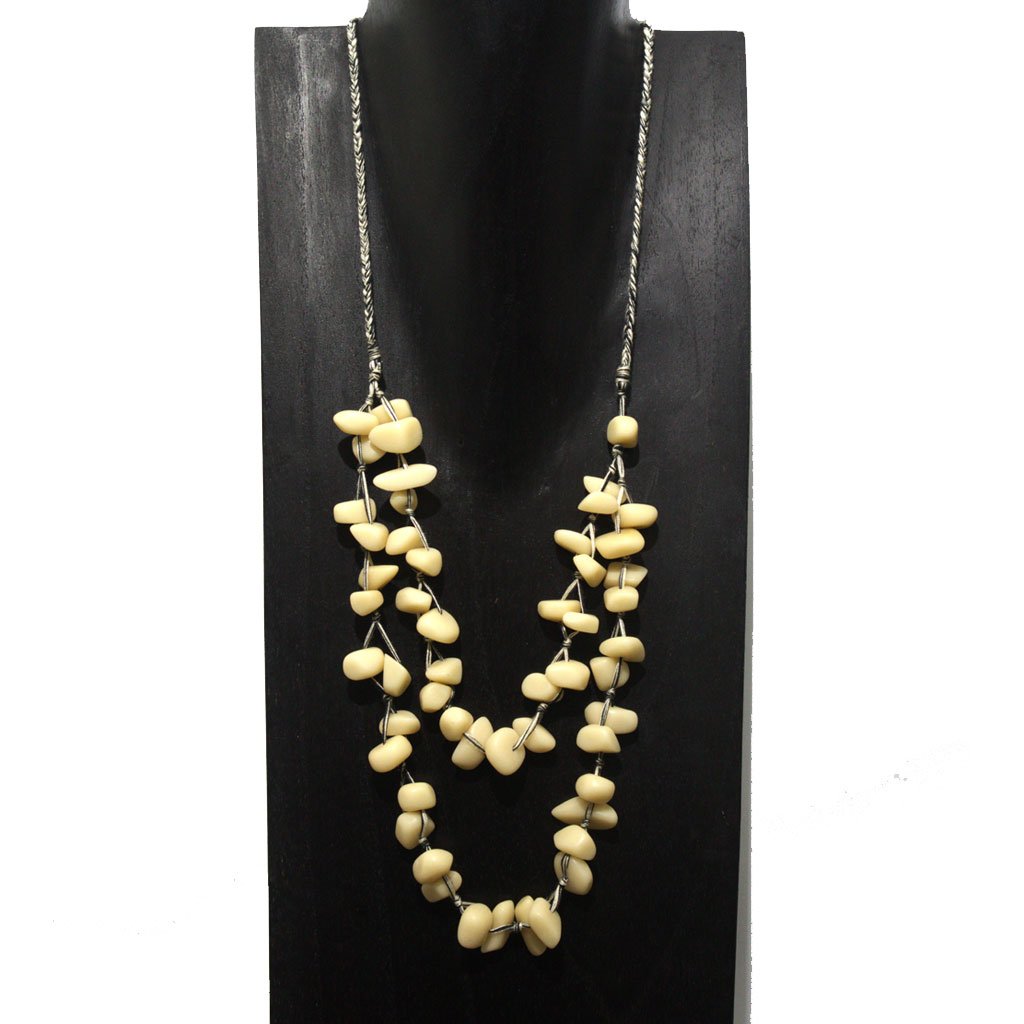 Kalung Manik Etnik Layer Model Abstrak Warna Putih Gading (Bone White) – Gaya Rustic
